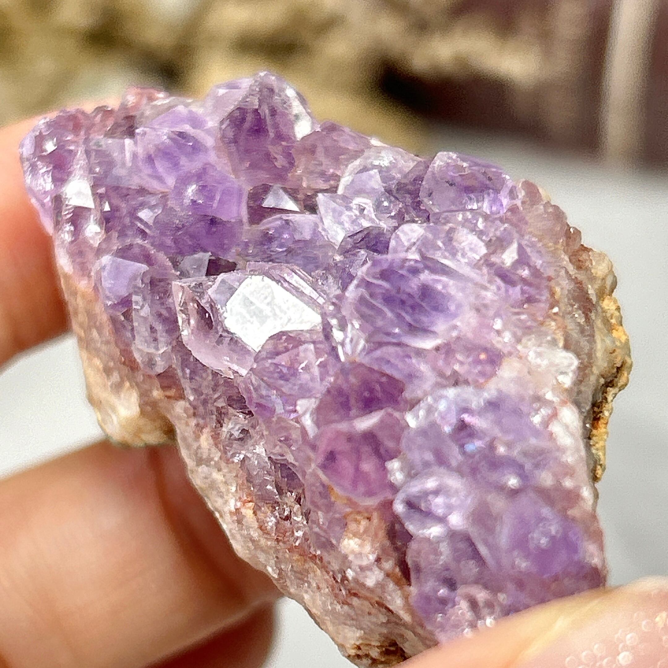 アメジストは、水晶の仲間である「石英(クォーツ)」のうち、鉄イオンを含むことで紫色に発色したもの。
