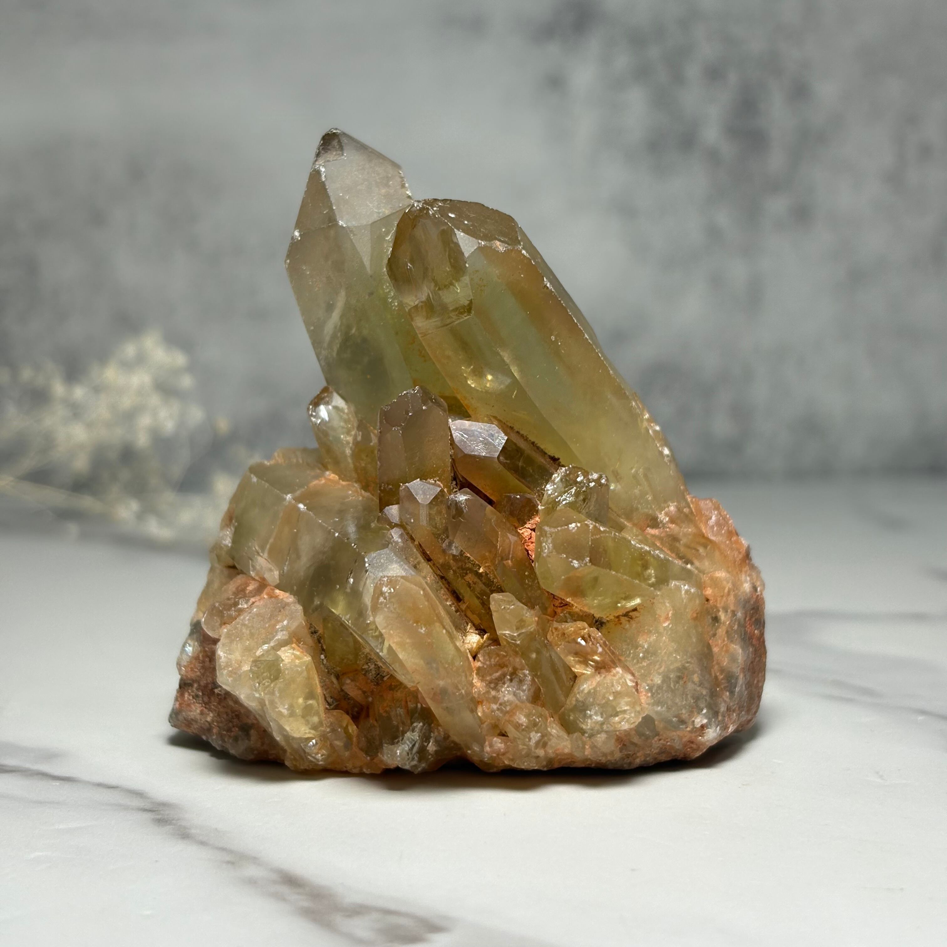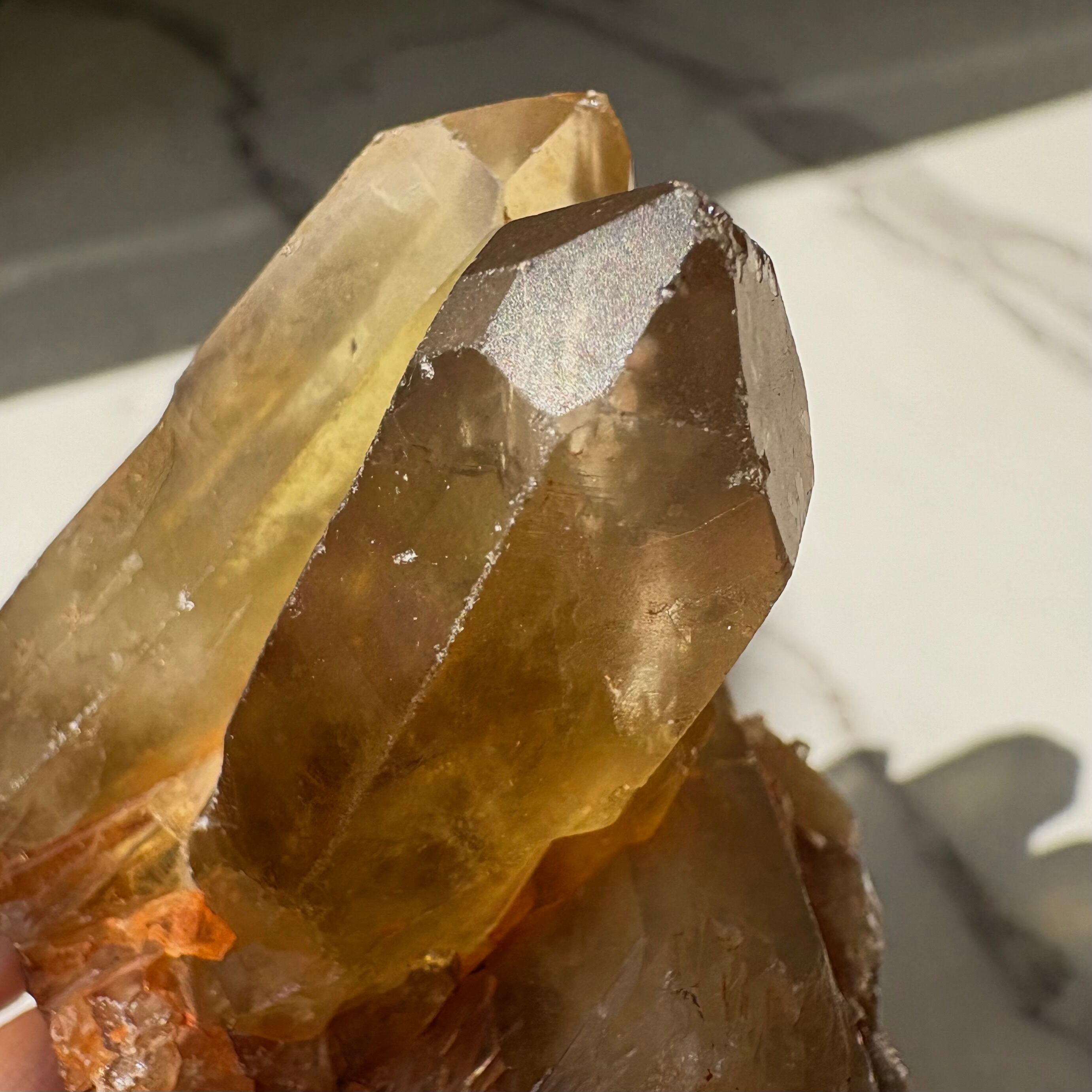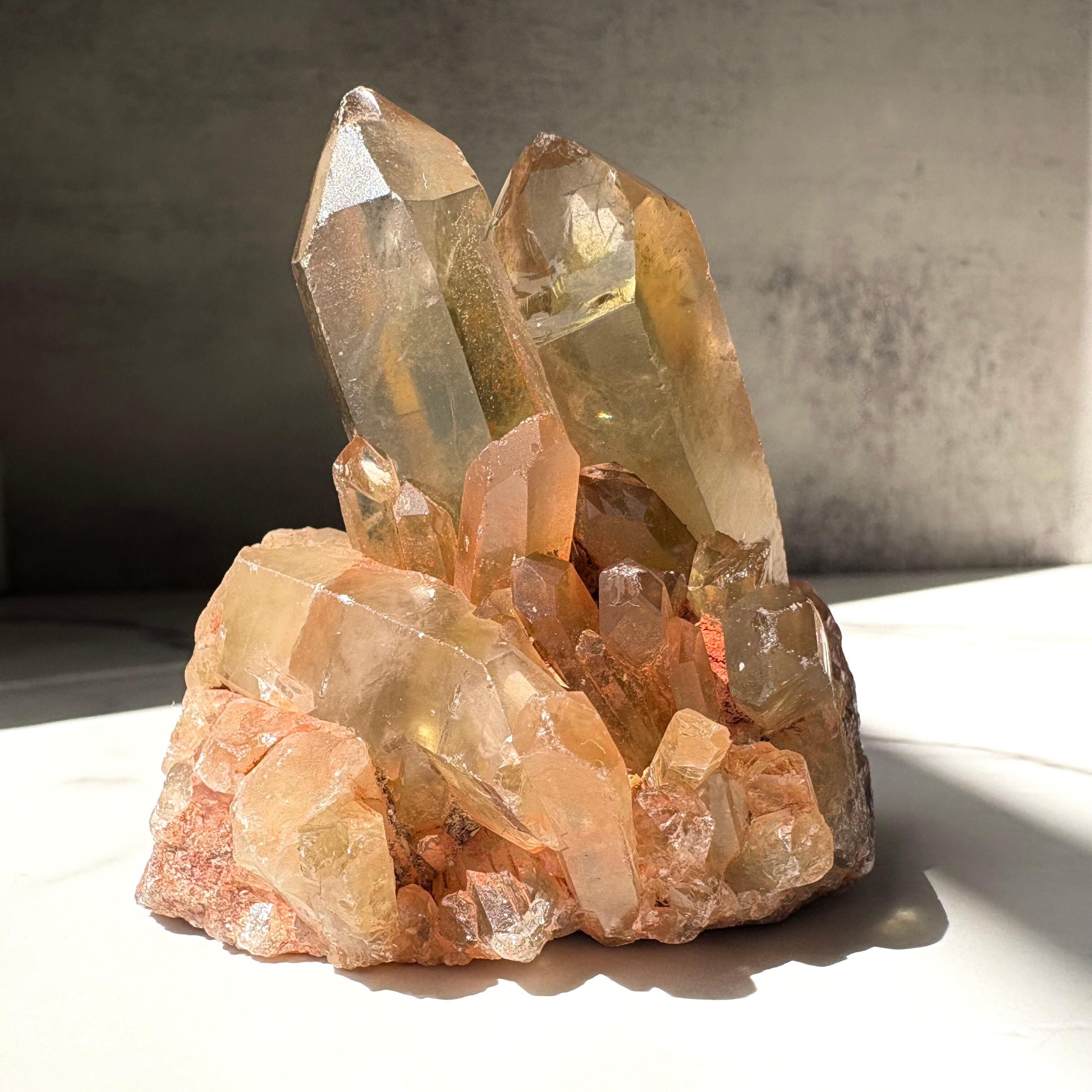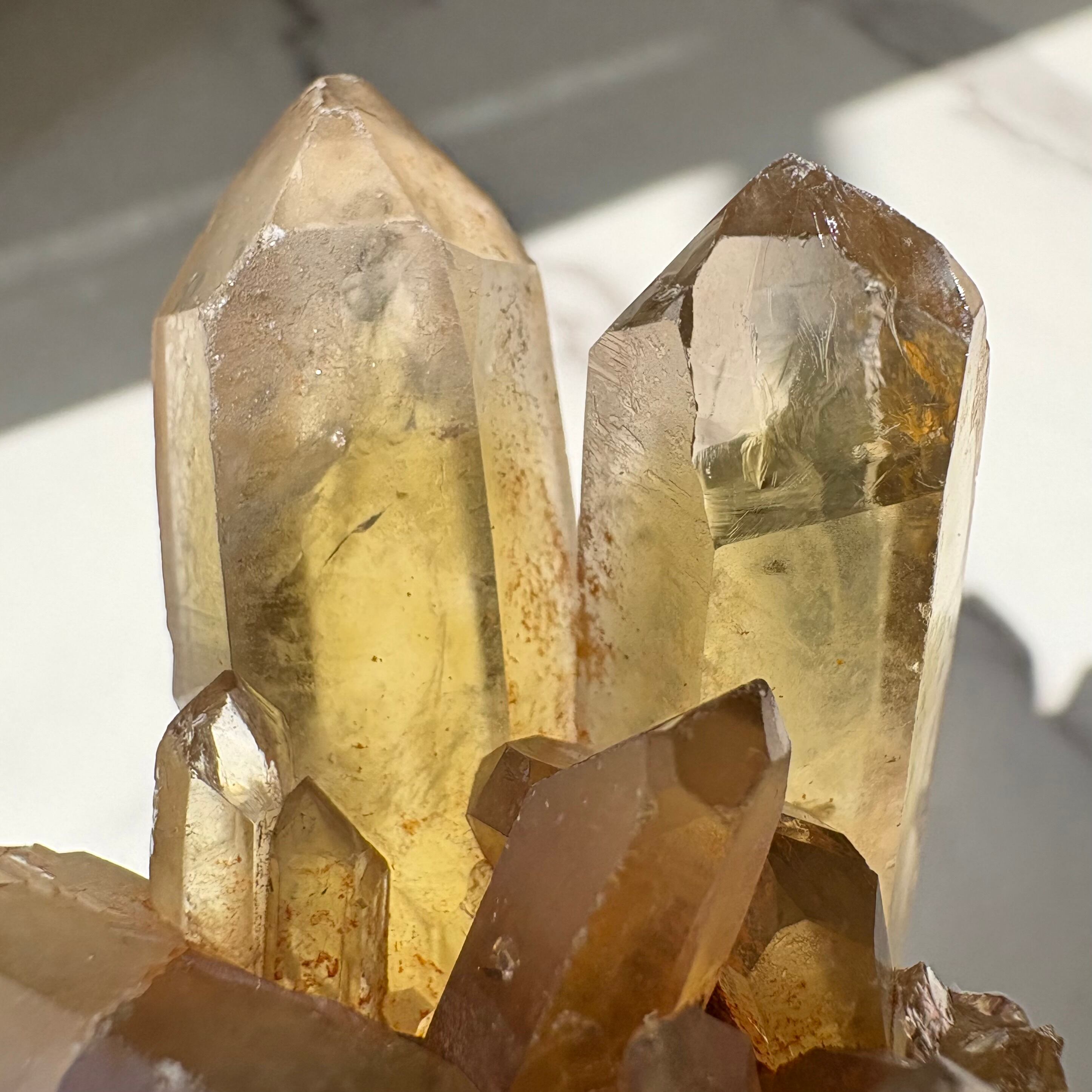 太陽の光を閉じ込めたような、黄金色に輝くシトリンのクラスター。