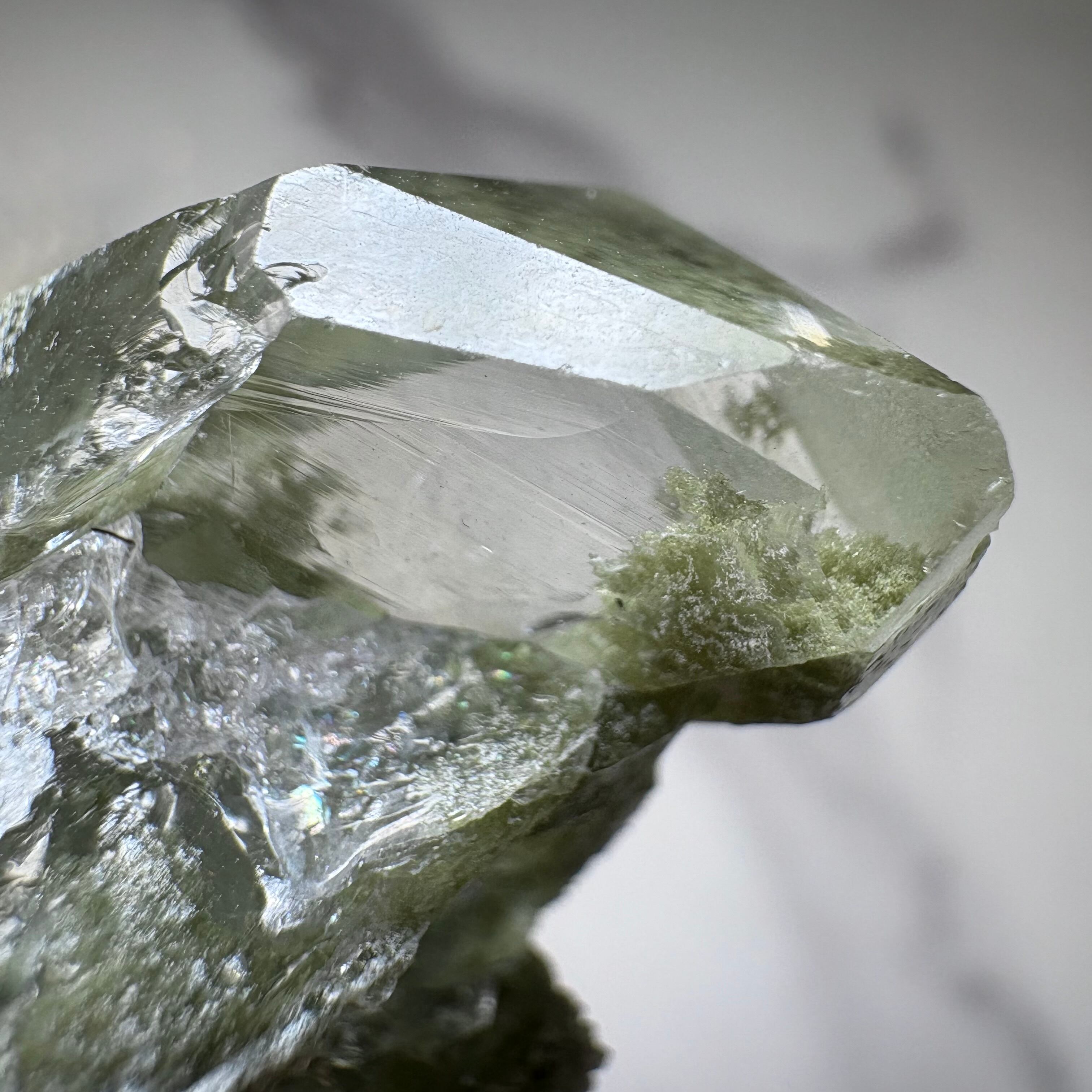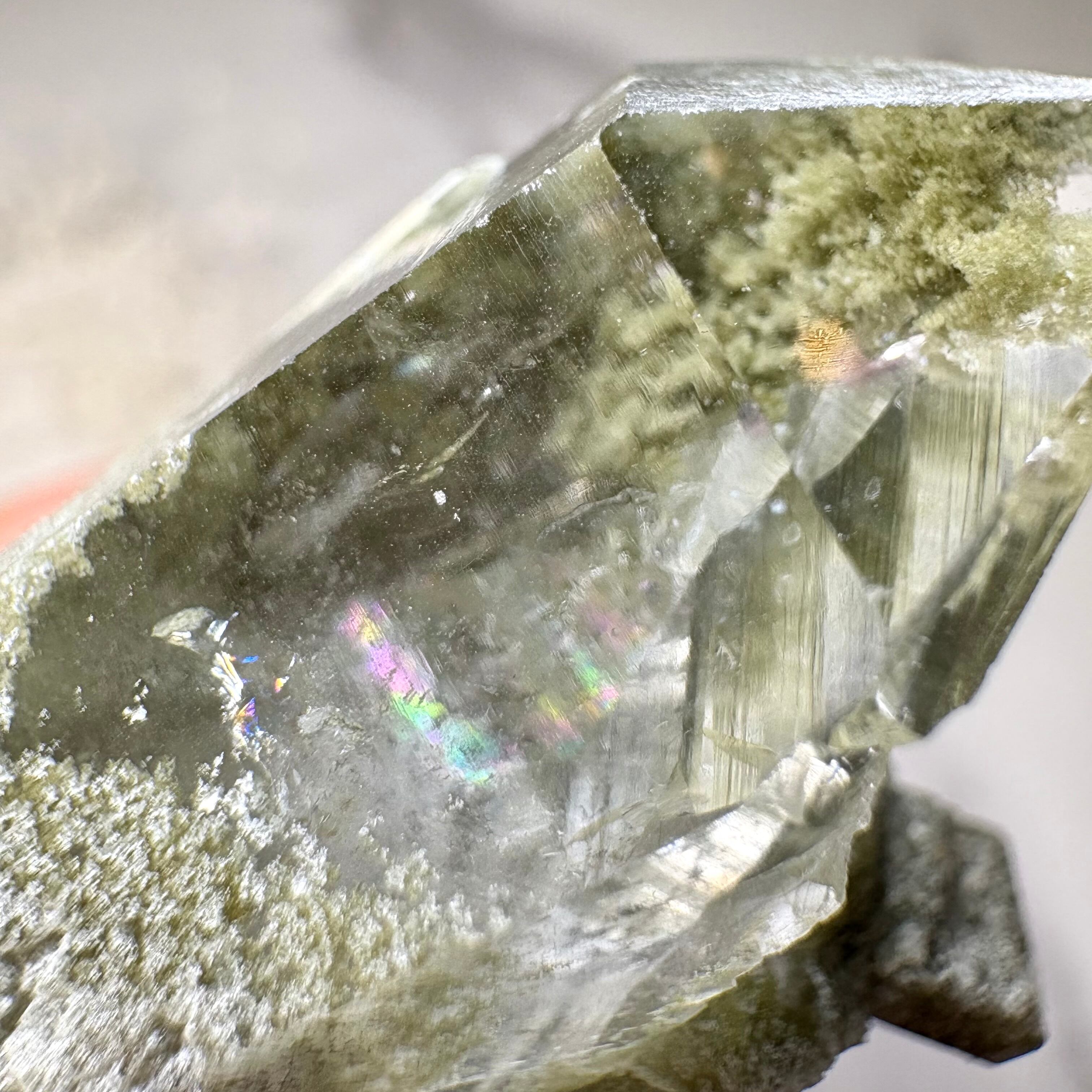 角度によって虹が現れ、まるで「癒し」と「希望」が共に息づいているかのよう。